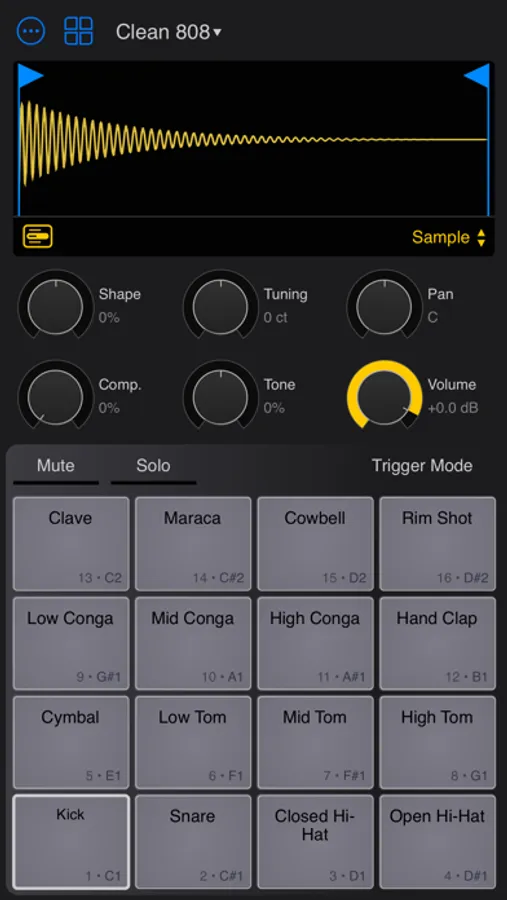 • 3 built-in drum kits: 808, retro and hip-hop