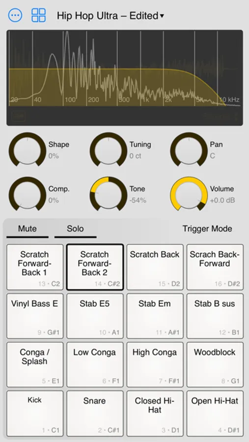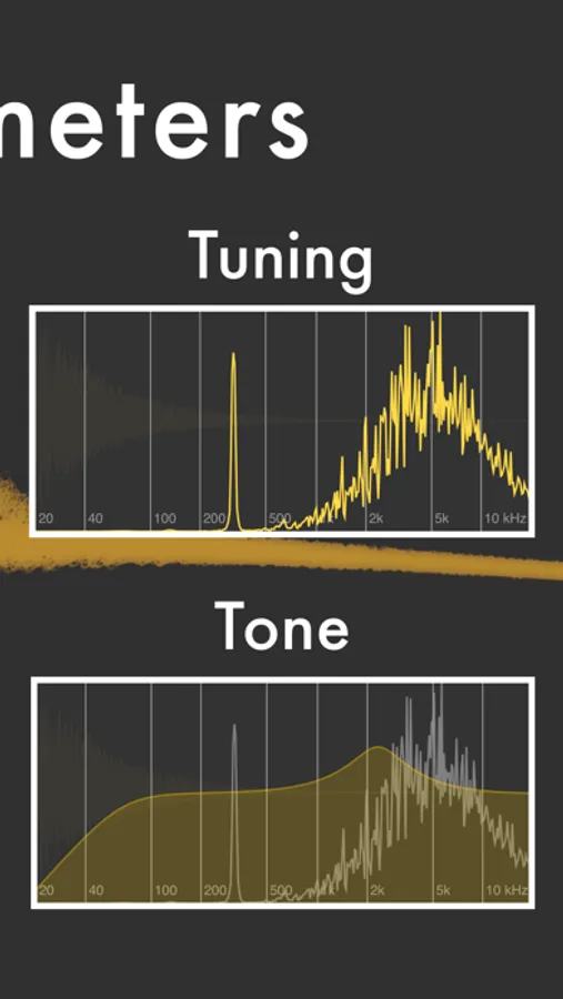 • Tuning: pitch sounds up or down by up to one octave while showing you exactly where the current sound falls in the frequency spectrum
