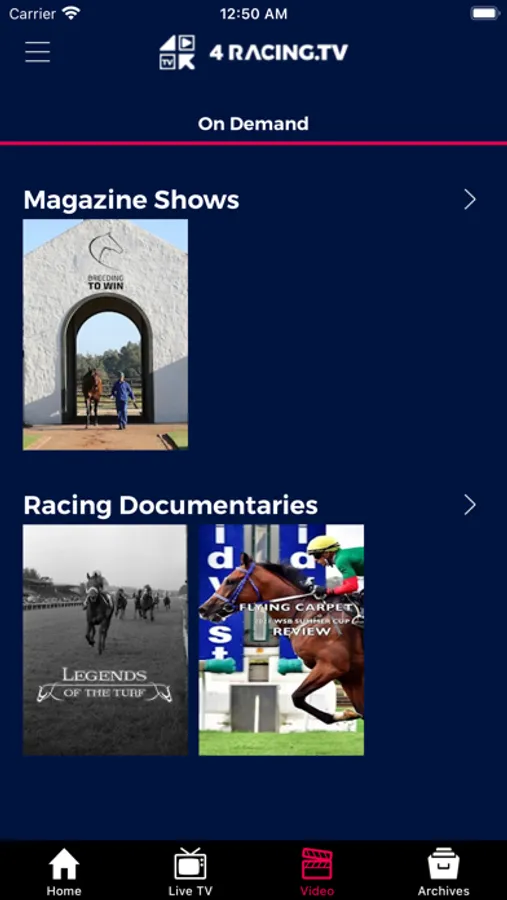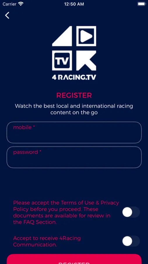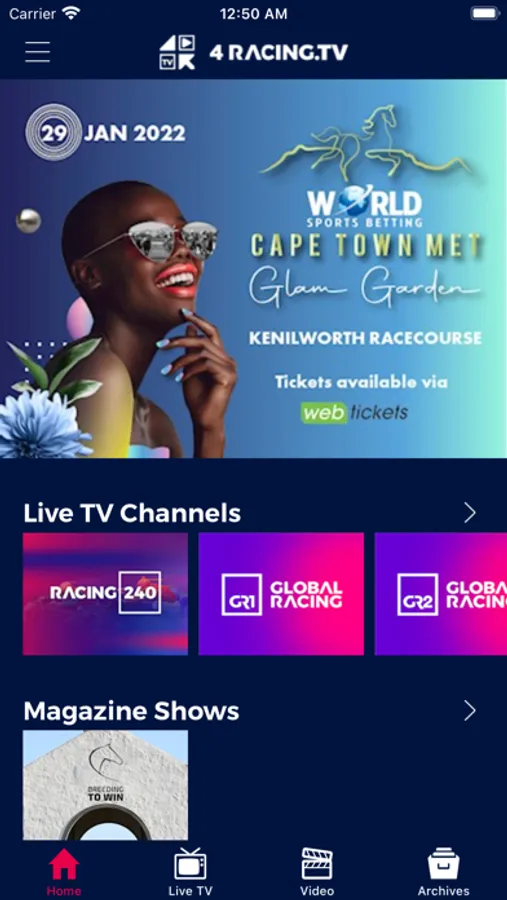 4racing.tv allows you to live-stream or catch-up the best local and international racing content on the go, on your mobile device. You can set reminders for future races, check out what we are covering on our various channels via our electronic programme guide, add your favourite races to your playlist or share your races with friends on family via our easy social sharing functionality. Our On-Demand section is packed with past full day coverage of the major local race days, the premium international events, documentaries, magazine shows and more. Access to Archive and On-demand is free for all registered users. Our live streamed channels have been curated for all horse racing fans and punters.