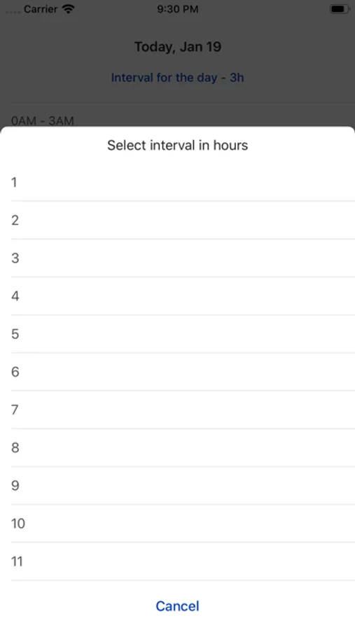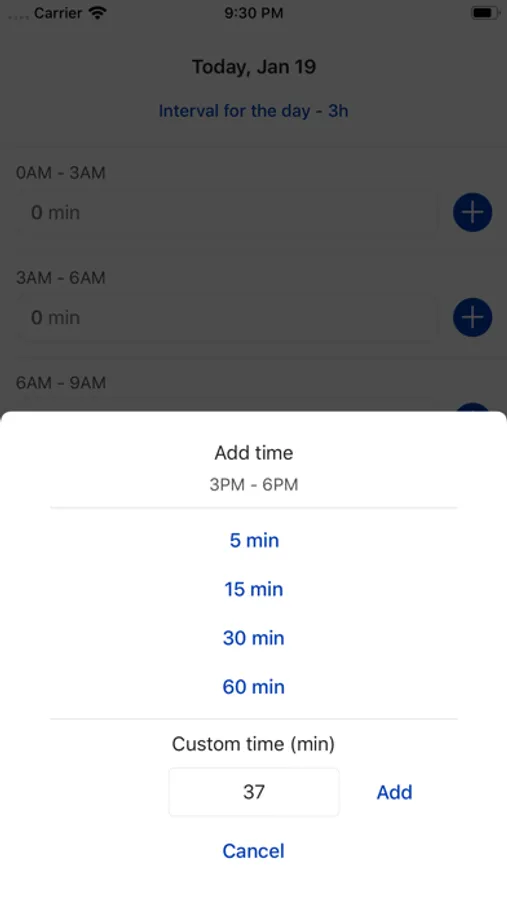 With this app you can easily select interval for the day and add times inside intervals.