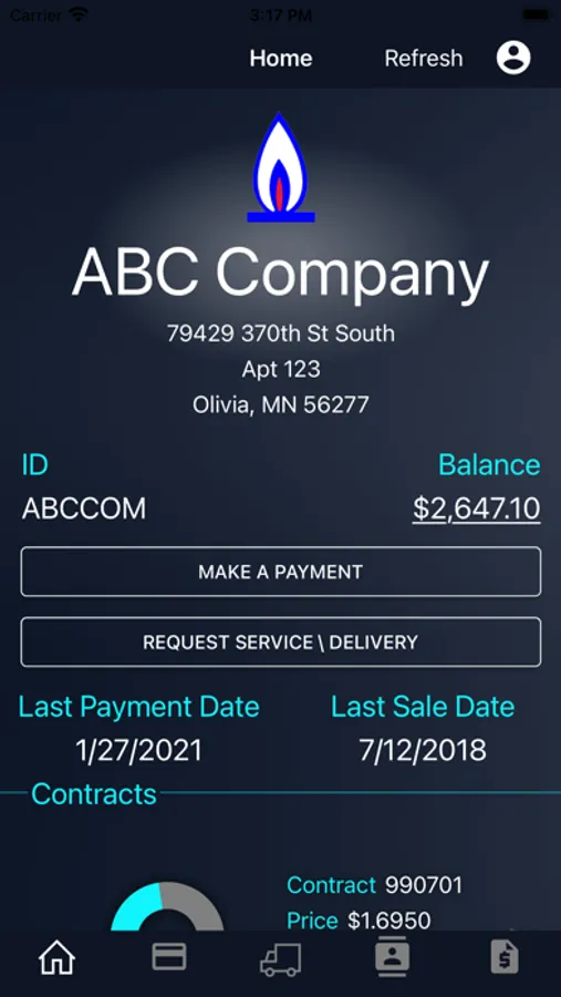 Information at your fingertips! This app gives you direct access to your account balance, location and contract information. It also gives you the ability to store and process payment and request service work and deliveries directly through the app.