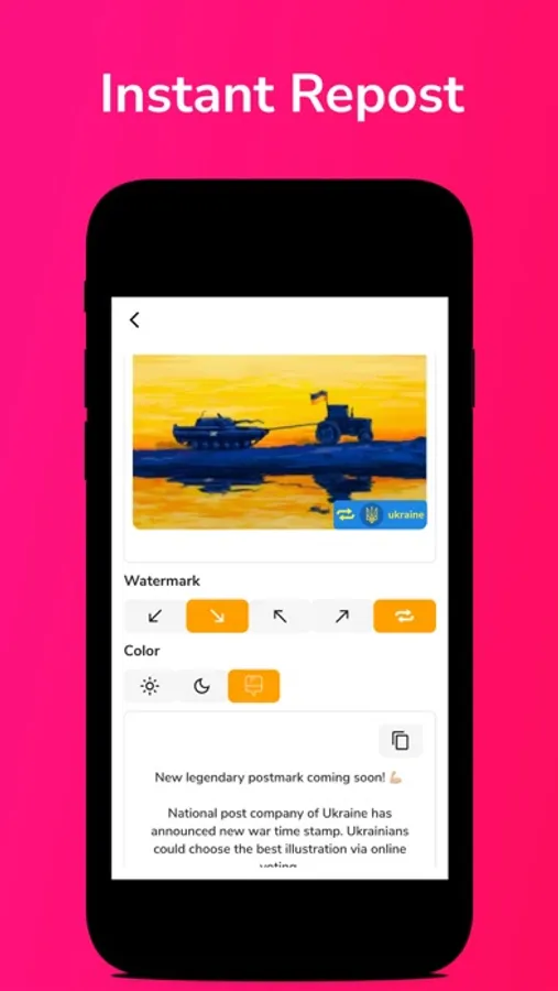 Install "Instant Saver - Repost" now to wave goodbye to screenshots, clipping screen, and rewrite caption. With this app, you can save your favorite photo and repost it whenever you want!