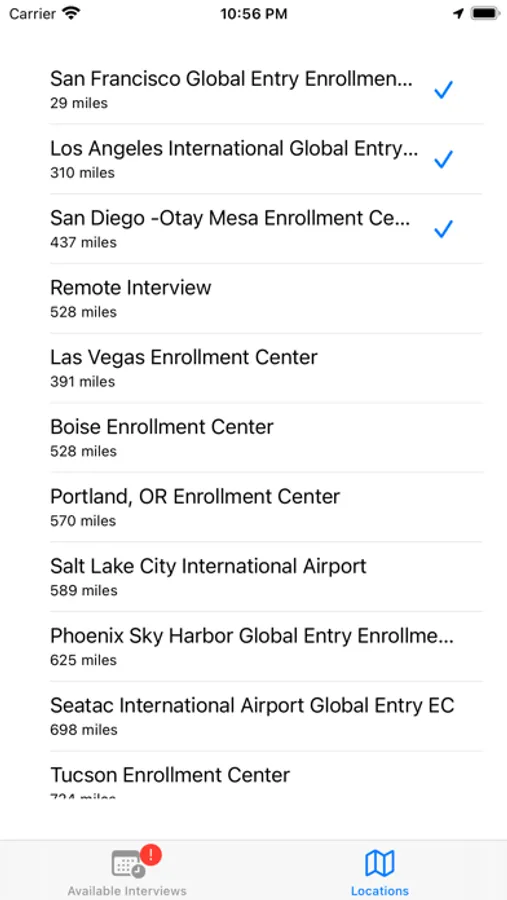 2. Tap one or more nearby interview locations and enable alerts.