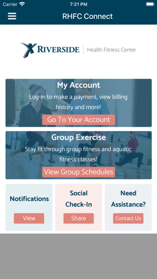 RHFC Connect will allow Riverside Health Fitness Center (RHFC) members to have access to the facility at their fingertips! The app will provide Access to the following: