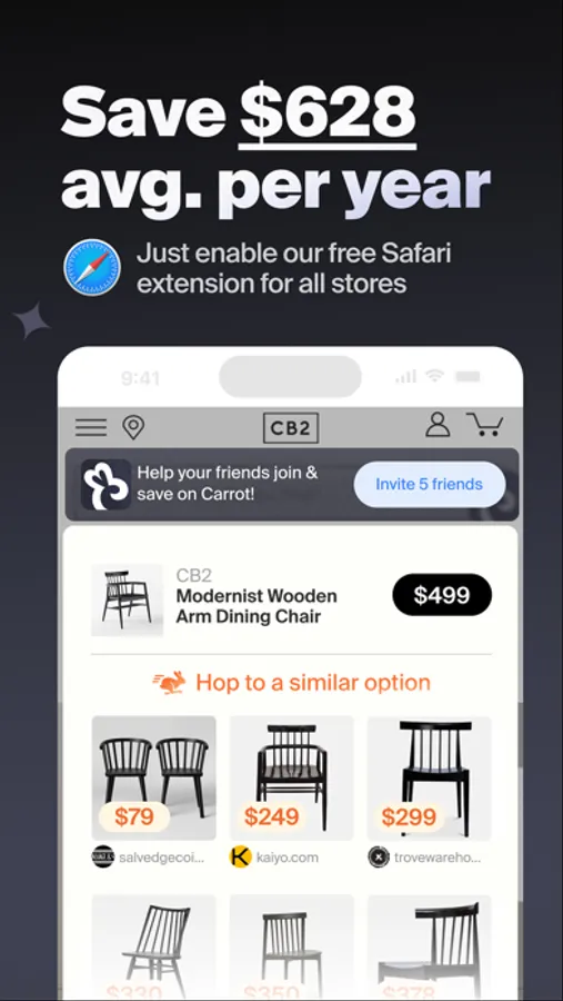 • Sync all your mobile and desktop shopping with Carrot's Chrome extension. You might be surprised at how often you shop on your computer!