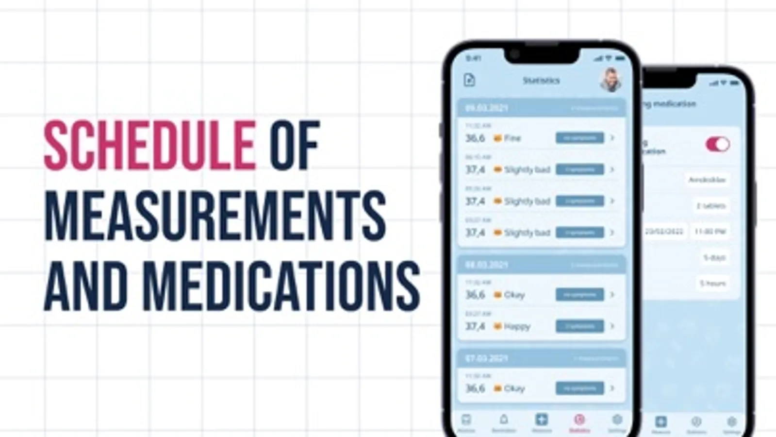 Take care of yourself with our termomether app! Keep track of your health easily with daily temperature measurements and statistics of measurements. Look after your family by creating personal profiles for health checkups. Write down your feelings and symptoms for easier history of your condition. Recommendations tab will help you with your possible sicknesses.