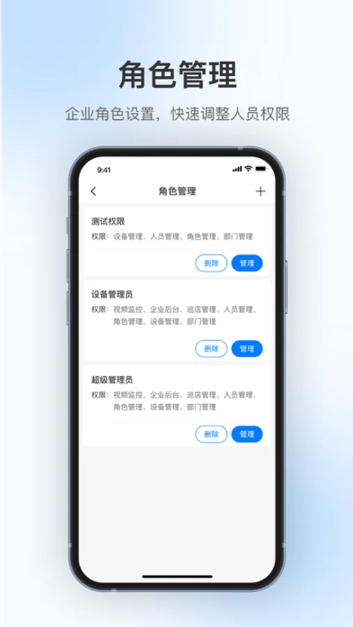 360视觉云通过以视频监控为基础,提供了企业管理、人员管理、部门管理、视频监控、云存管理、角色管理等6个基础管理应用。用户可以根据使用场景对企业进行定义,通过角色管理对企业成员赋予成员权限,设置管理员协助管理企业组织,快捷的管理企业。
