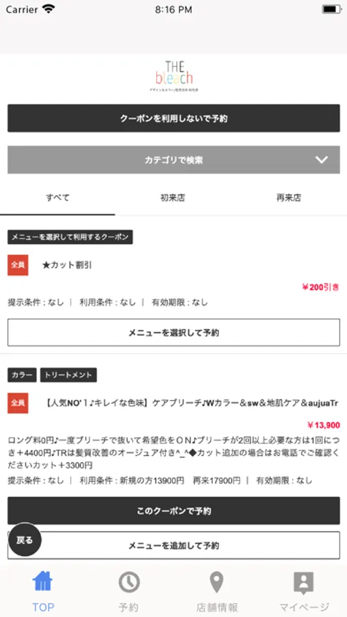 お得なクーポンが配信されます。ネット予約時にクーポン利用での予約も可能なので来店時もスムーズに施術頂けます。
