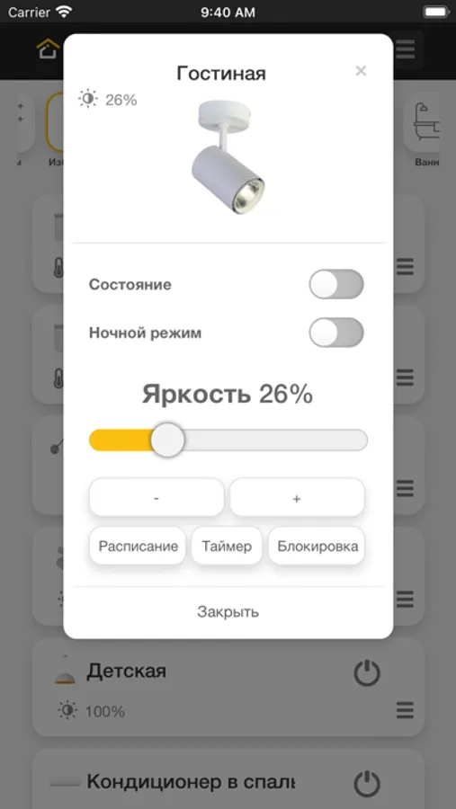 – В приложении есть таймеры, вы можете задавать время до включения или выключения того или иного прибора.