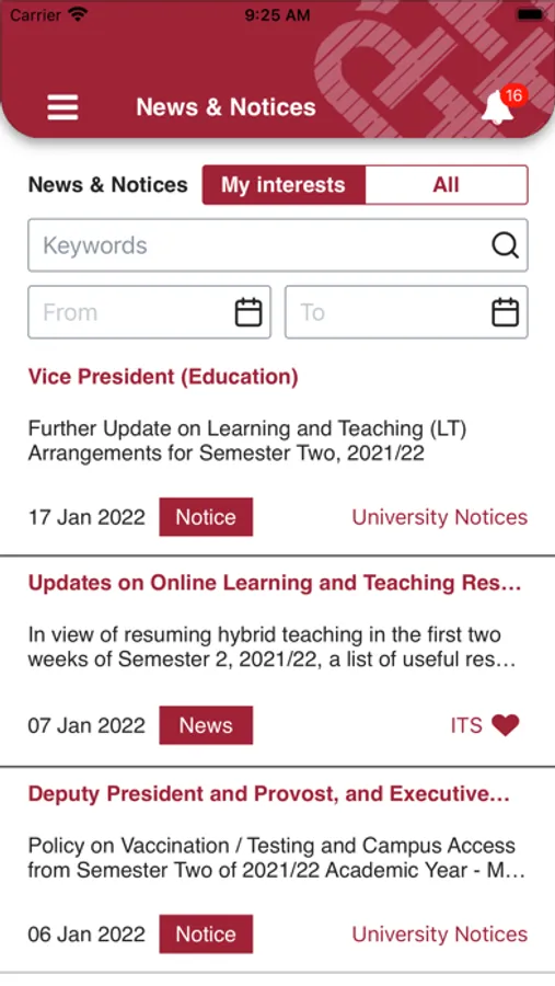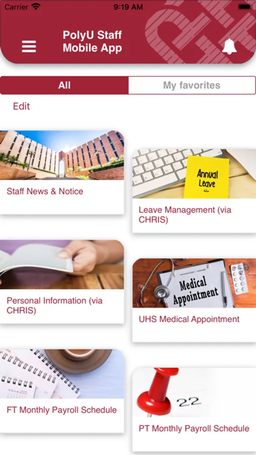 The app allows PolyU staff to instantly receive news and notices from departments and faculties. It also allows you to easily access common services from HRO, FO, UHS, and ITS.