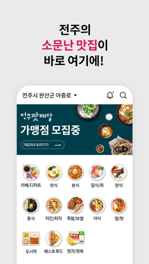- 한식, 일식, 중식, 아시안, 야식 등 전주의 맛집을 전주맛배달에서 만날 수 있습니다.