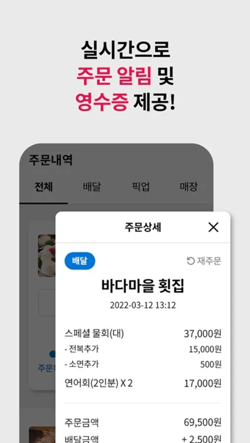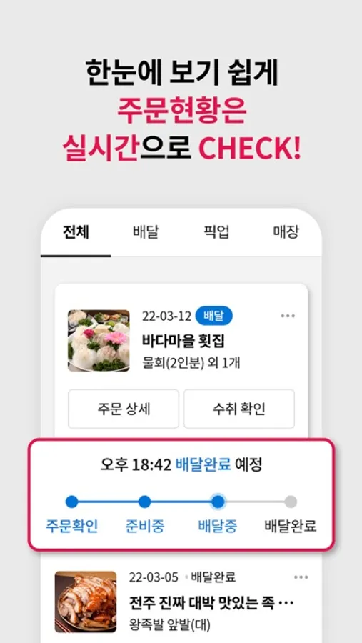 - 언제 어디서든 실시간으로 내 주문현황을 빠르게 확인 할 수 있습니다.