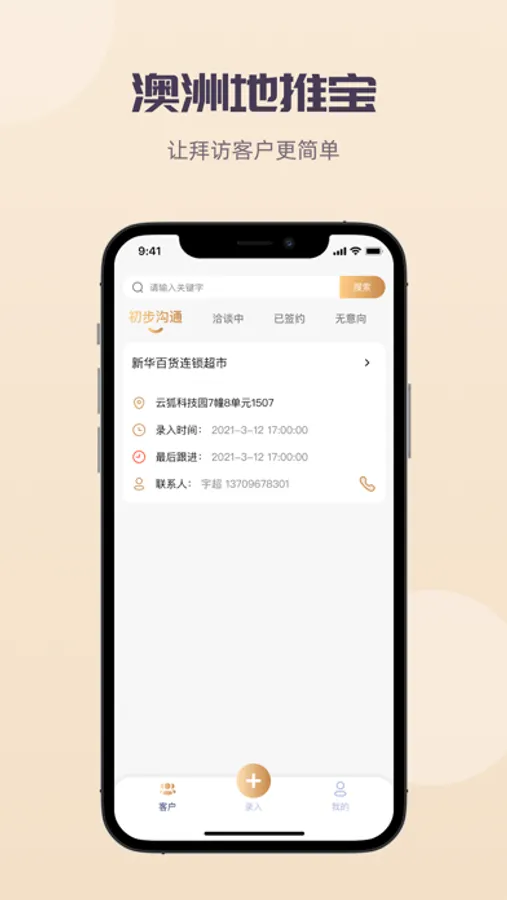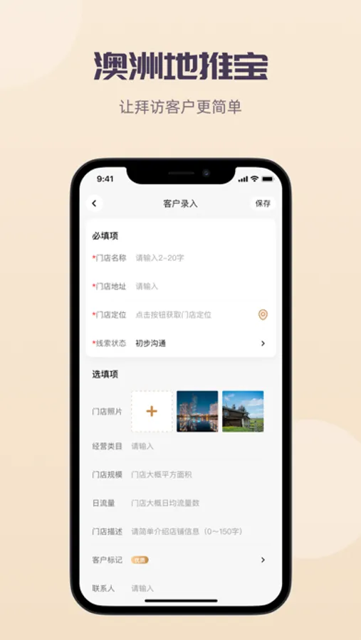 澳洲地推宝是杭州金蚁旗下的一款专注于服务地推员的实用工具,能够专门帮助澳洲地推员记录和保存客户信息,方便后期拜访用户,并且可以根据历史数据查看对应地址的线索情况,从而减少重复拜访的问题。是一款对地推员管理,线下客户拜访的移动管理工具,进而帮助提升市场运转的效率,获得更多的品牌推广价值。