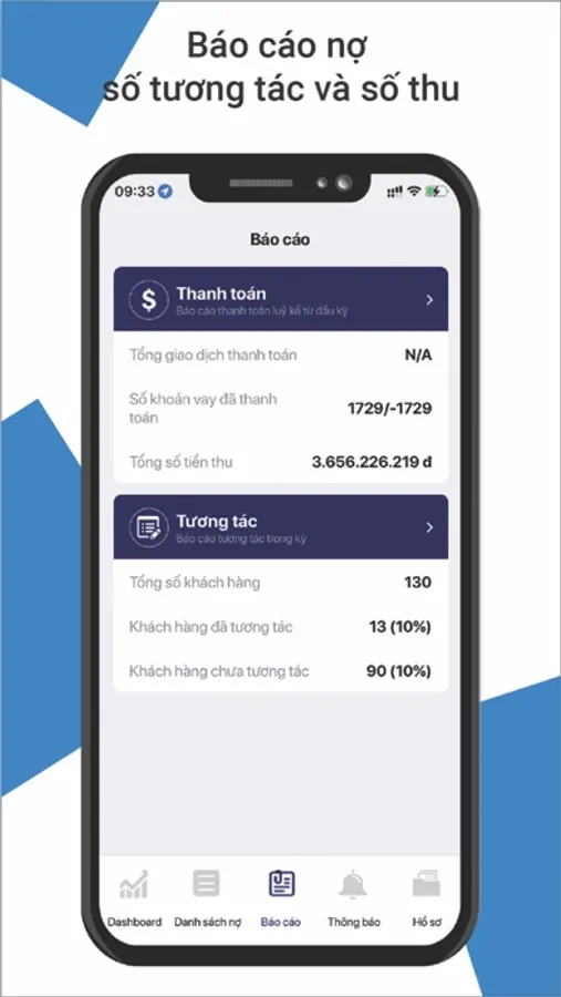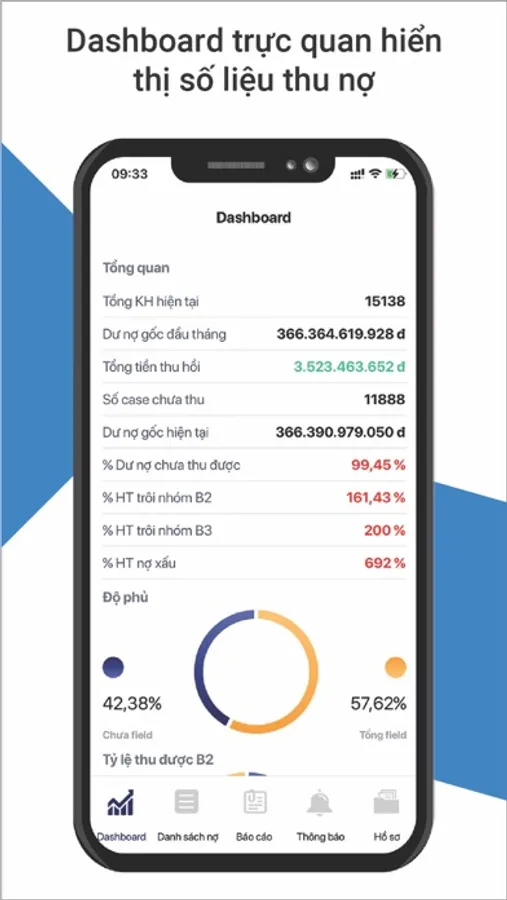 Hỗ trợ thu hồi nợ cho tổ chức tín dụng, ngân hàng, công ty thu hồi nợ. Không cần giấy tờ cầm tay, hồ sơ khách hàng trực quan 24/7, cập nhật theo thời gian thực, tiết kiệm thời gian, đơn giản, dễ sử dụng, thao tác nhanh.