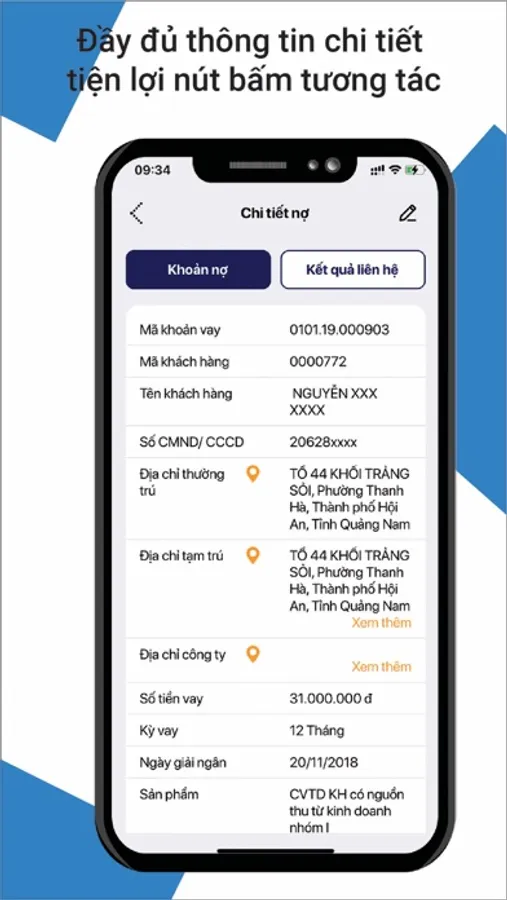 • Xem thông tin hồ sơ vay: lịch sử thanh toán, lịch sử tương tác