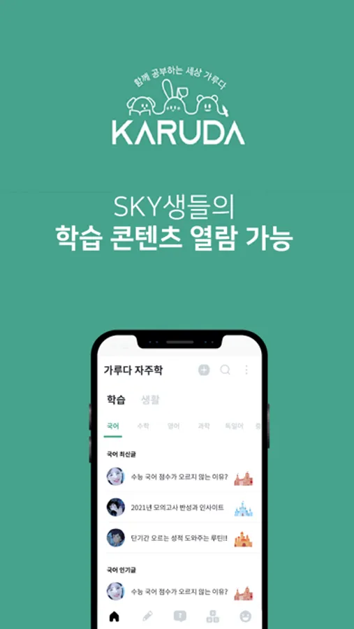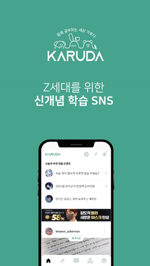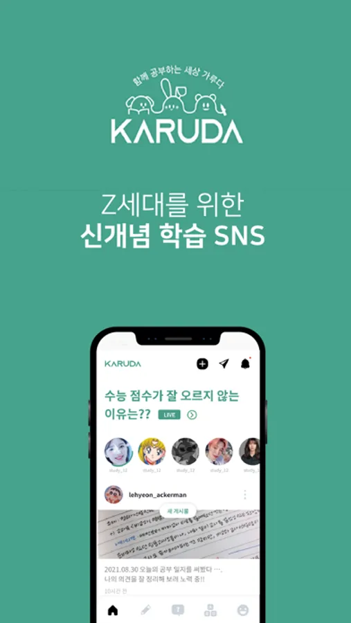 Z세대를 위한 신개념 학습 SNS, 가루다는 '학습'과 '놀이터'를 제공합니다.
