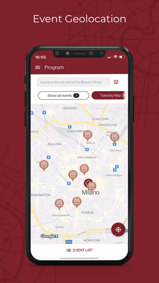 - Use the geolocation service to reach the venues of the initiatives you have selected
