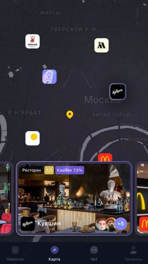- бизнесы продвигаются в приложении с помощью новостной ленты и рейтинга от пользователей