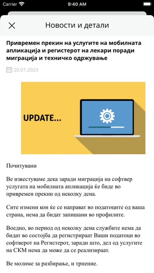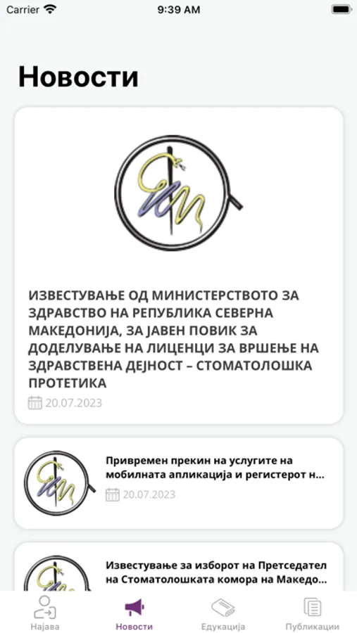 Апликација за директен контакт, информирање и известување на докторите на стоматологија од РСМ како и проверување и ажурирање на личните податоци и податоците поврзани со лиценца и членство во комората.