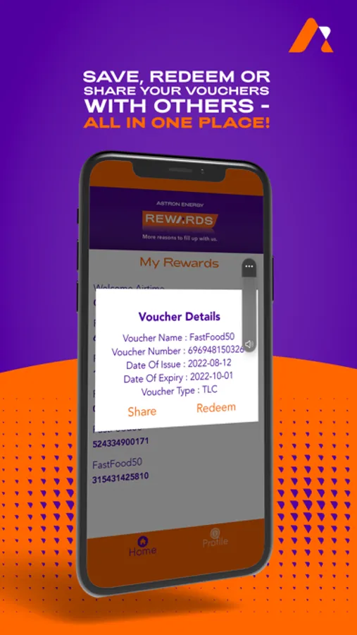 Using the mobile app, you can sign up for Astron Energy Rewards, as well as track and gift your Rewards vouchers, all in one place.