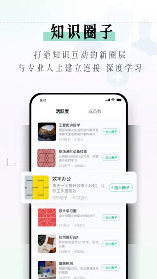 加入喜欢的圈子,与大咖建立连接,深度讨论与学习,不断钻研与成长