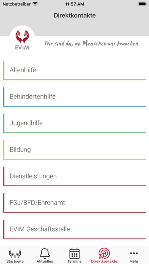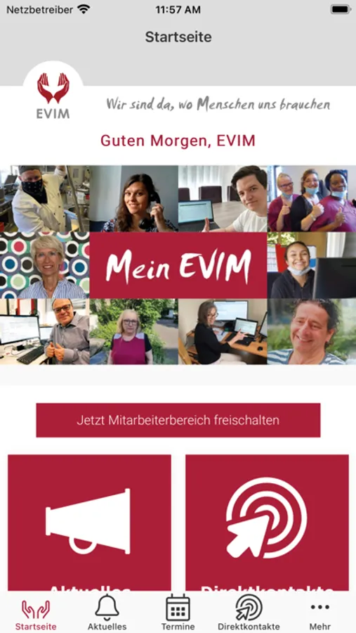 Die MeinEVIM-App ist das Informationsportal für alle Mitarbeiter:innen von EVIM – Evangelischer Verein für Innere Mission in Nassau. Über Push-Nachrichten erhalten die Beschäftigten News zu relevanten Themen: Personal, Stellenausschreibungen, Zusatzleistungen, Infos und Termine aus dem Verein und seinen Geschäftsbereichen sowie der Mitarbeitervertretung. Die App bietet schnellen Zugang zum Download wichtiger Dokumente und zu zentralen Kontakten.