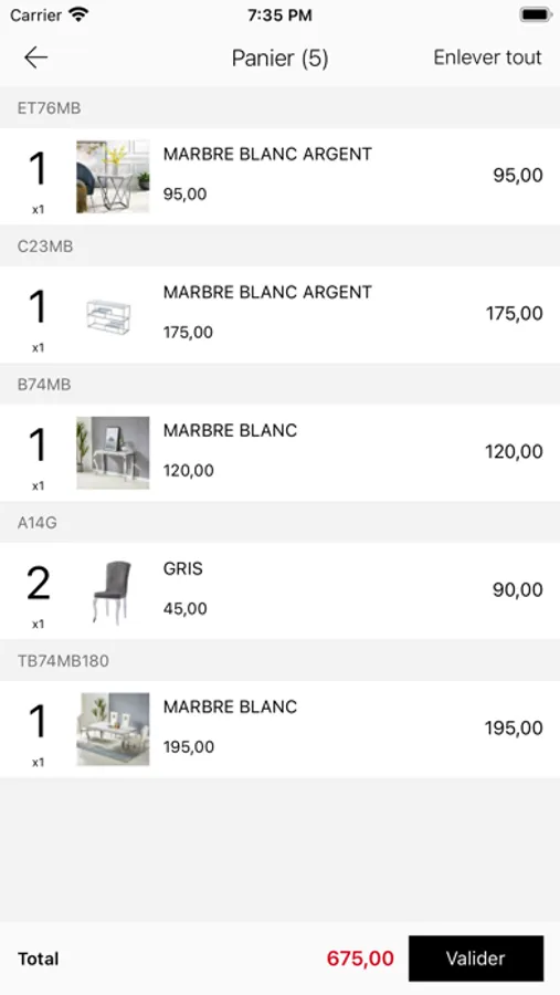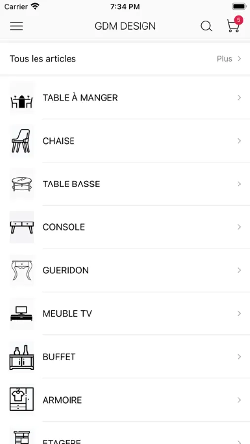 Notre catalogue de produits comprend une vaste sélection d'articles: table à manger, table basse, chaise, meuble TV, literie, console, buffet, meuble à chaussures, guéridon, armoire...