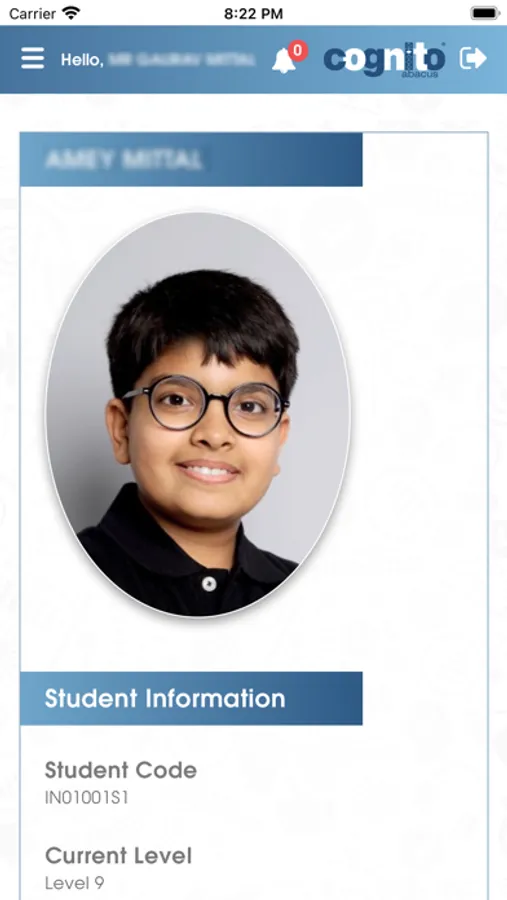 information to parents of children studying at Cognito Abacus. The app is designed
