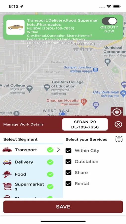 2. The app will list all nearby service drivers based on popularity or proximity,