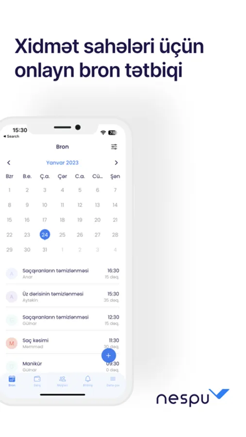 Bütün xidmət sahələri üçün asan və ağıllı onlayn bron xidməti