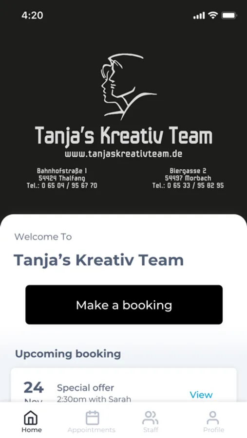 The Tanja’s Kreativ Team app makes booking your appointments and managing your loyalty points even easier. You're just a few taps away from feeling good and looking great!