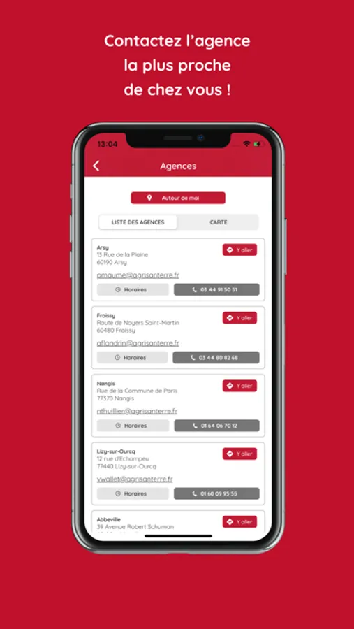 Depuis l'application Agri Santerre, vous pouvez trouver rapidement les coordonnées et les horaires des magasins et ateliers.