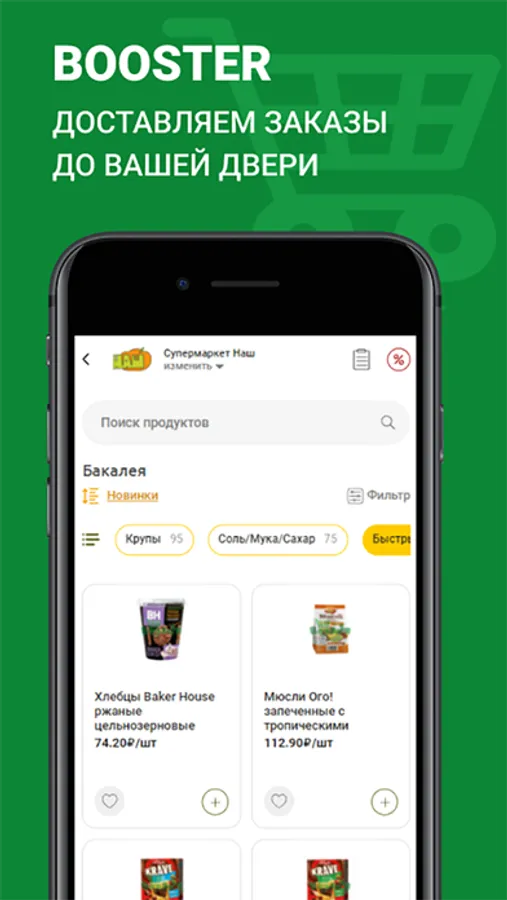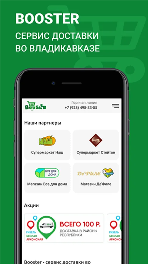 Booster-онлайн-сервис доставки продуктов, блюд готовой кухни, товаров для дома, красоты, животных из любимых магазинов Владикавказа по всей Республике.