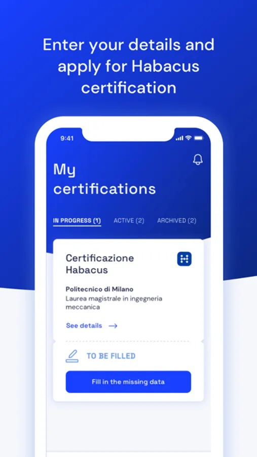 The Habacus app is a protected and digital environment that allows students to take advantage of the services that Habacus offers, including the certification of academic merit with the aim of facilitating access to sustainable loans to finance their studies.