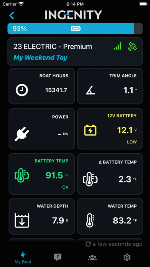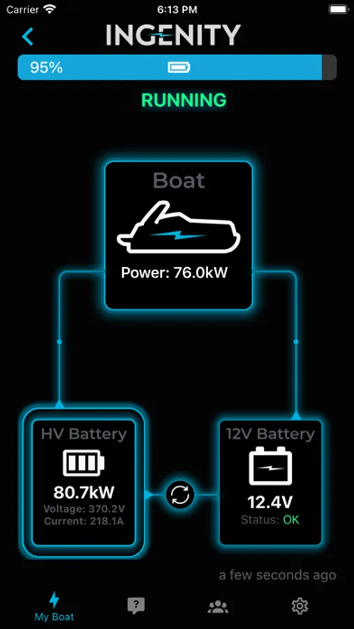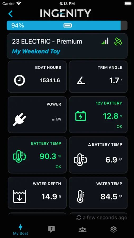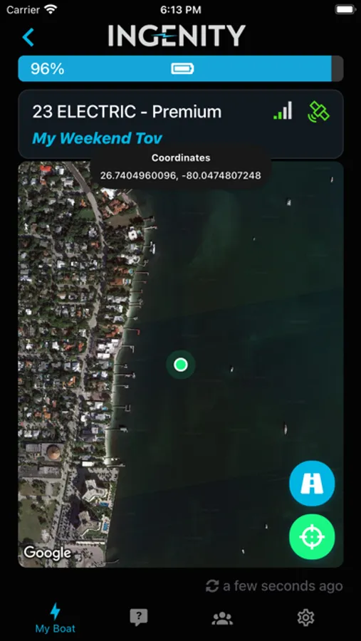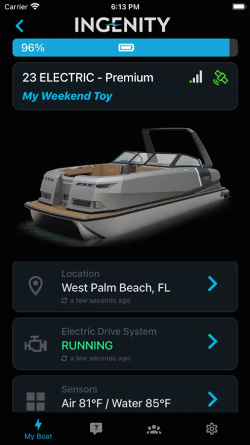 Ingenity Connect™ is a platform for Ingenity boat owners to stay connected with their 100% electric boat. You can remotely view drive system information, current location, battery voltage, temperatures, and other user-friendly information, as well as use Ingenity's concierge service and learn more about your Ingenity product.