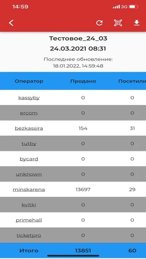 Приложение позволяет получать информацию о концертах и спортивных мероприятиях, в том числе подробную информацию о билетах, проданных каждым билетным оператором, а также получать подробную информацию по конкретному билету.