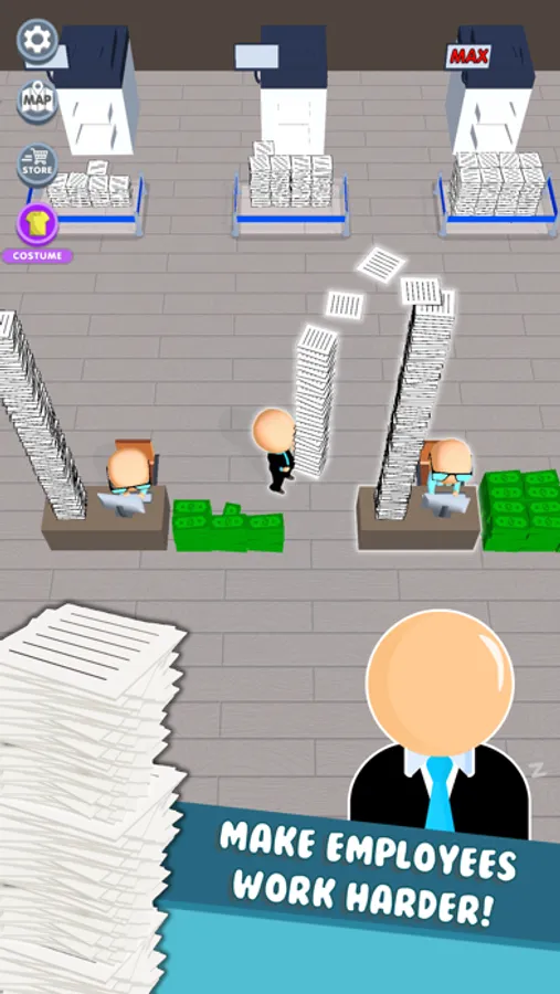 Once you collect enough money, you will grow your team, stack more papers, upgrade your printers and