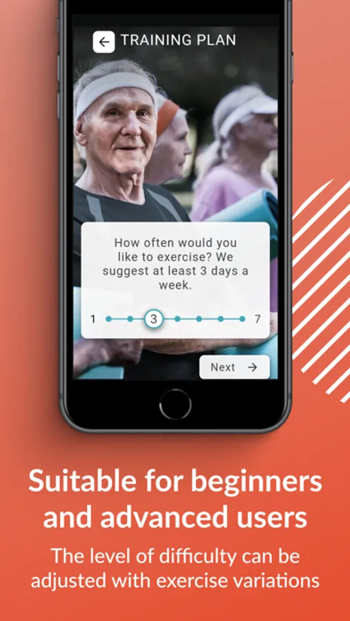 The program is ideal for beginners, as all exercises are explained in full detail. You can adjust the level of difficulty of your training, so advanced users also benefit from the same exercises. To increase difficulty, you can increase the number of repetitions, train with a resistance band, and if so, determine the appropriate level of resistance band (i.e., light, medium, or heavy resistance).