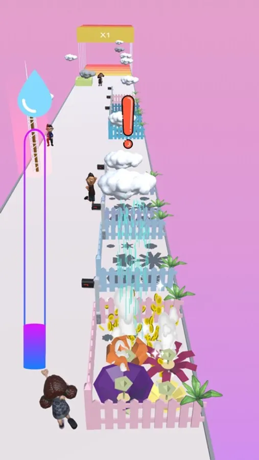 Cloud, our main character, waters the empty pools and flowers to be watered with the clouds they collect on the way to the final. while doing this, it tries to stay away from lightning rods and dark clouds because they damage our cloud. We try to reach the final by staying away from them. A feast with confetti awaits us at the finale.