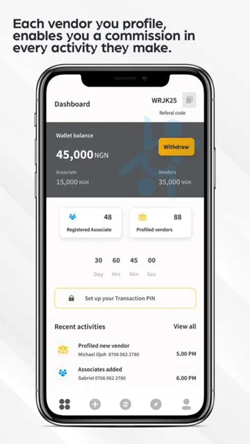 Workdey Profiling App has an easy, seamless and convenient interface where associates profile vendors into the WorkDey Ecosystem, while warning commission from referrals and activities of the vendors profiled.