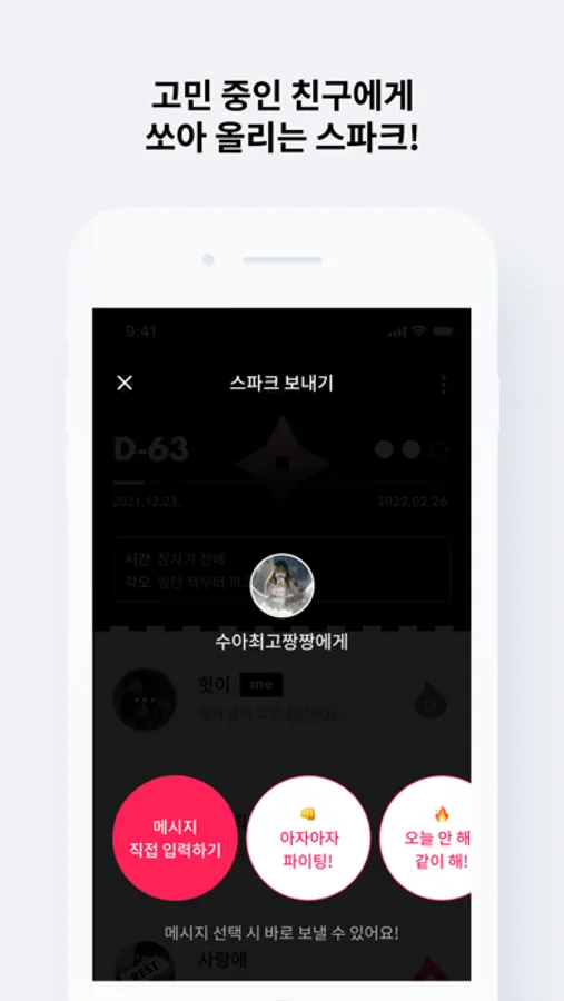 친구가 보내는 응원 메시지로 다시 의지를 다져보세요!!