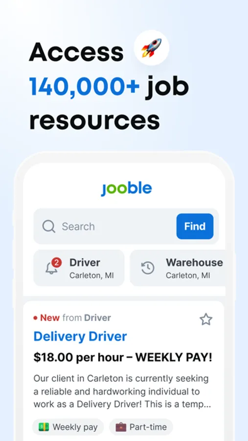 Discover new job opportunities, explore companies, and kickstart your career with the Jooble Job Search App.