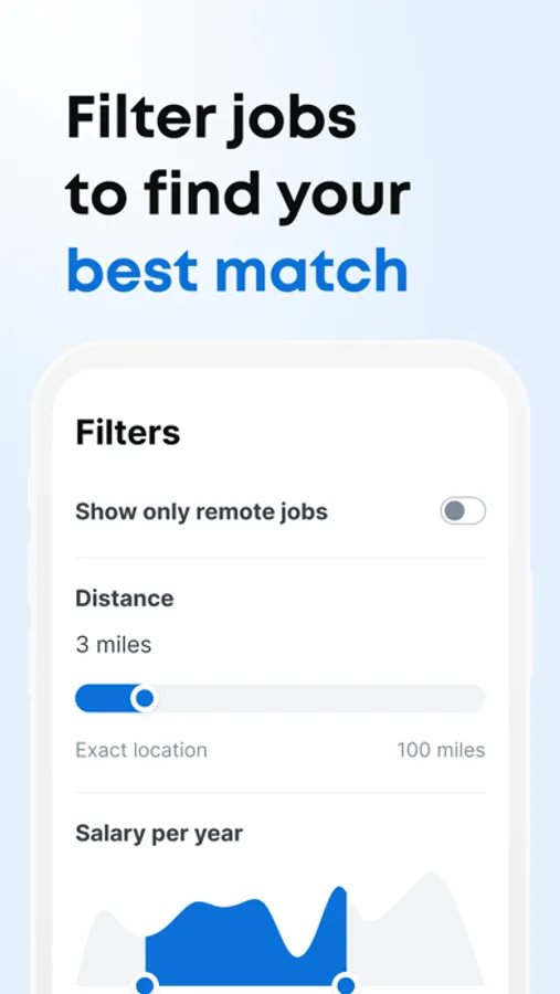 Use Jooble to research job roles based on your search queries and set your preferred geographical location as per your needs. You can set geographic preferences to find the convenient country/state/city/and select jobs that fit your experience and skills. Download the app, create your account without a Jooble resume, and get instant access to the best job search service.