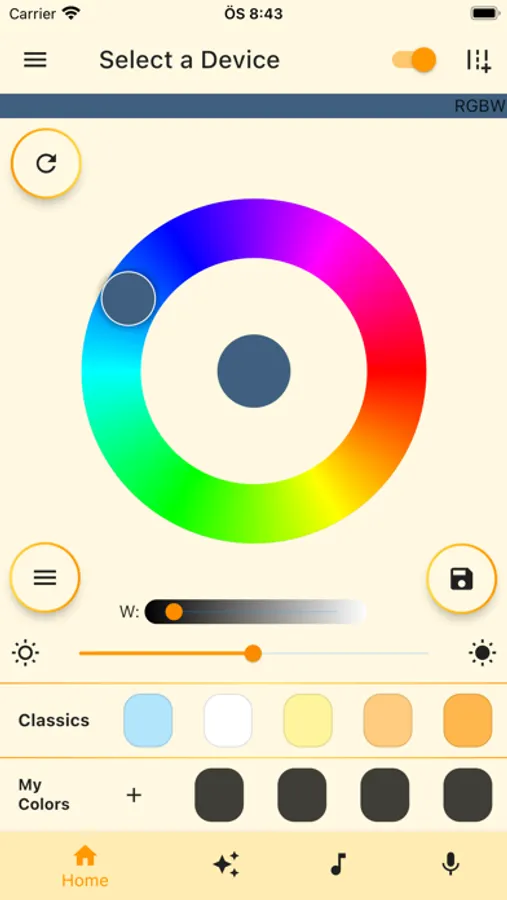 - Control hue and brightness of your lights and save your favorite ones,