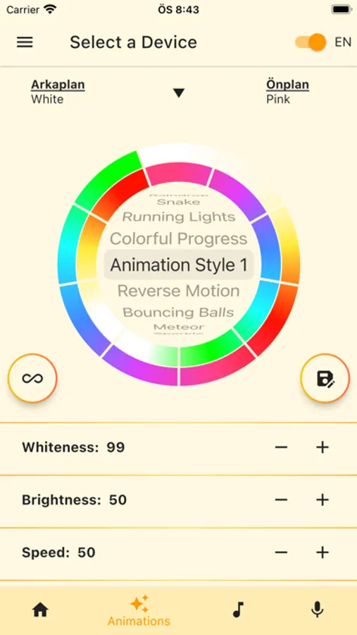 - Play 22 different animations in 9 colors with speed and brightness values you want,