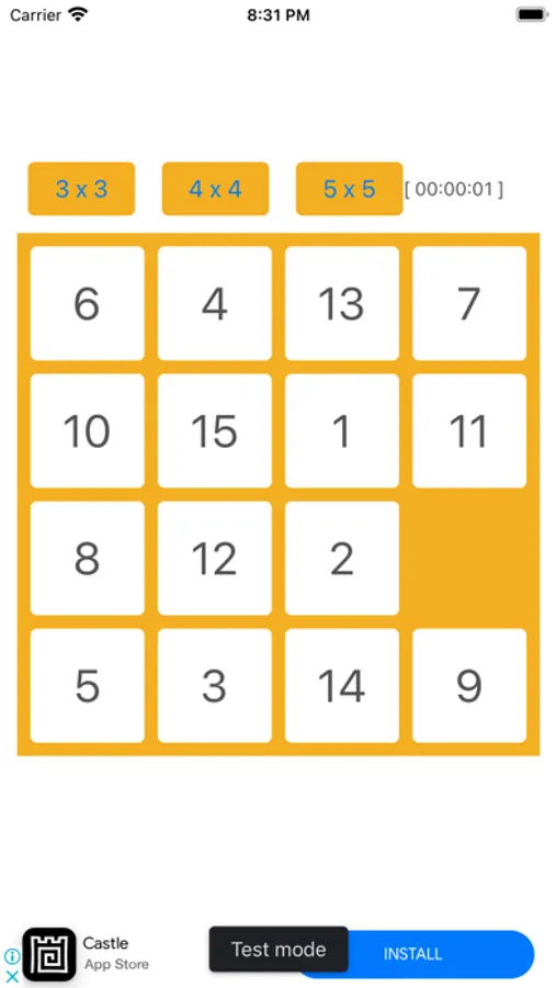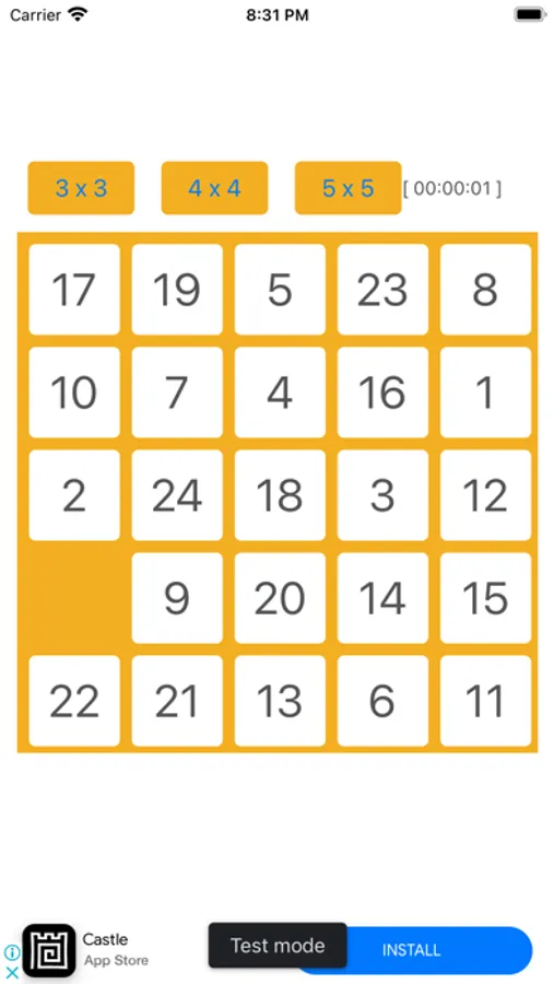 Board sizes to choose from 3x3, 4x4, 5x5.