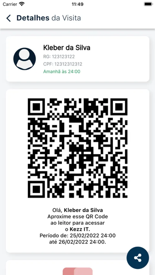 - Liberação de visita: Realiza a liberação de visita com QR Code ou previsão de visita;