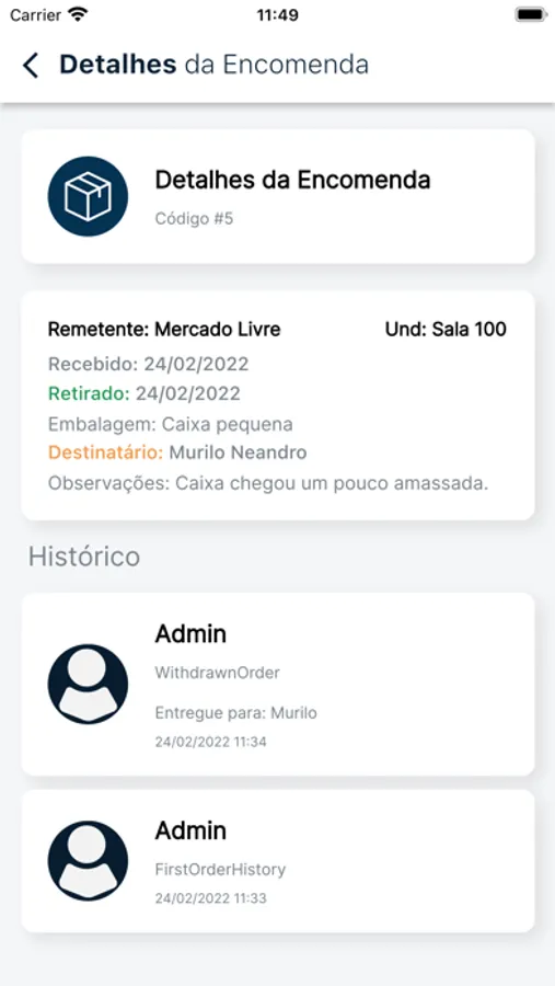 - Encomendas: É possível ser notificado sobre o recebimento de encomendas;