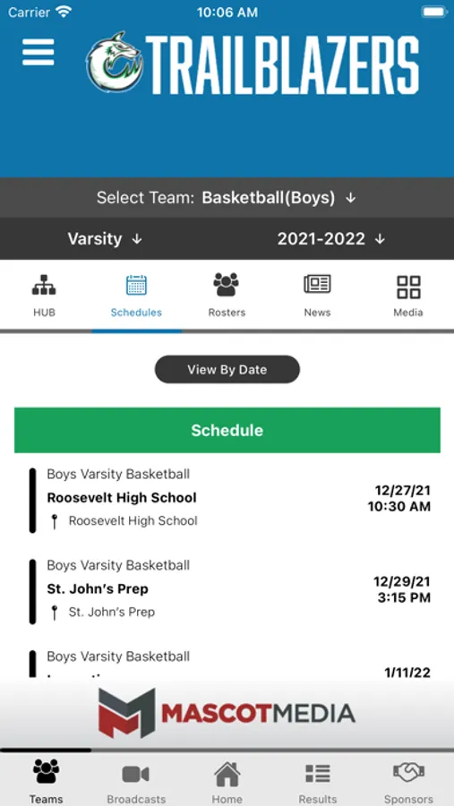 - Schedules: Current sport schedules and scores.