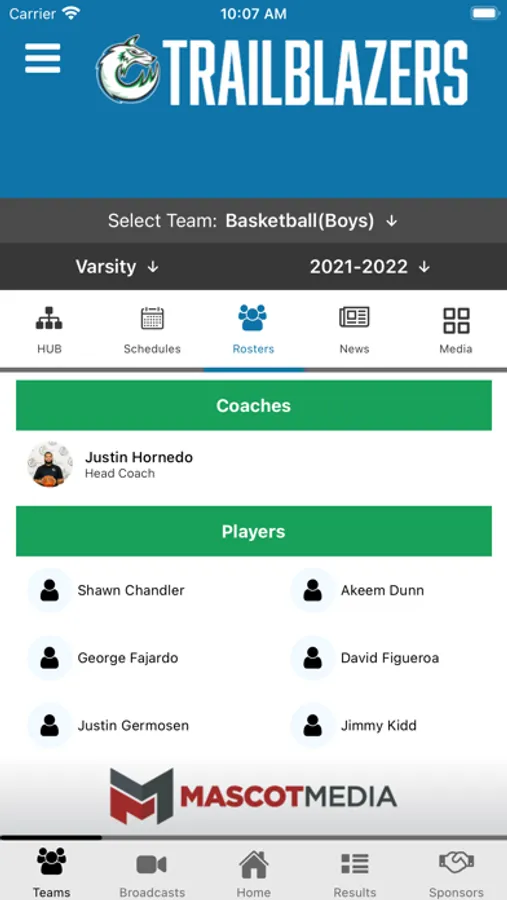 - Rosters: Current rosters by sport including jersey number, name, photo, position and grade.